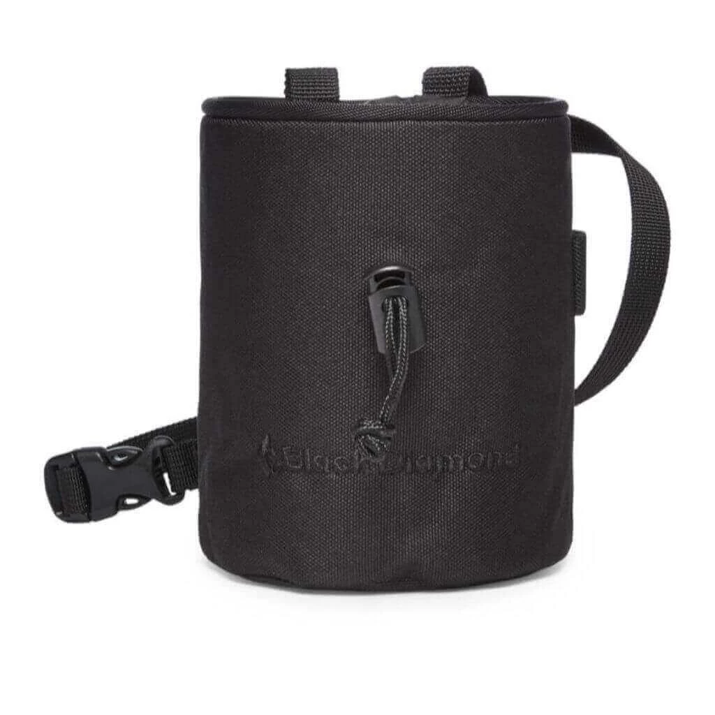 Black Diamond’s traditional, no-frills chalk bag with a cinch closure and buckled webbing belt.