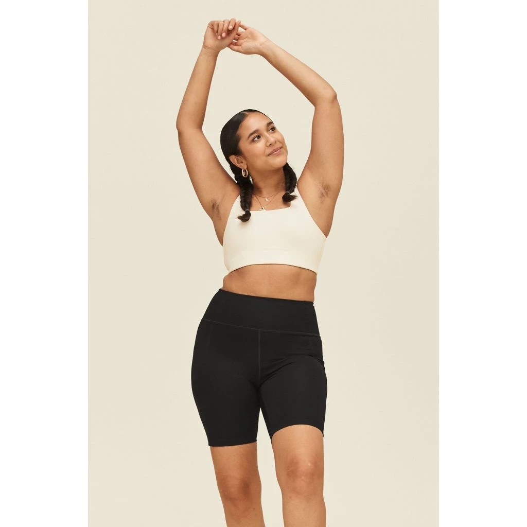 You don’t have to bike to wear bike shorts, but biking cuts down on greenhouse gas emissions, reduces road congestion, and is a pollution-free mode of transport… just saying. Made from recycled water bottles for working out and looking cute.