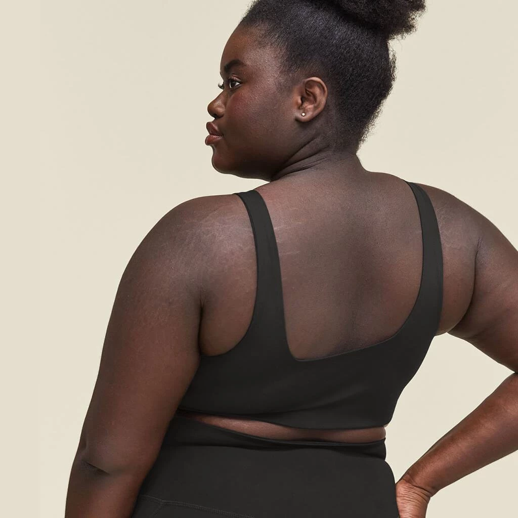 The Tommy Bra is just as supportive as your racerback sports bras, but it has a low scoop back and an open square neckline.