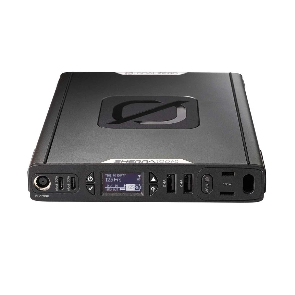 - Integrated 100W AC Take the outlet with you, on the plane or in the wild, for serious power anywhere you need it. Perfect for keeping cameras and laptops charged.