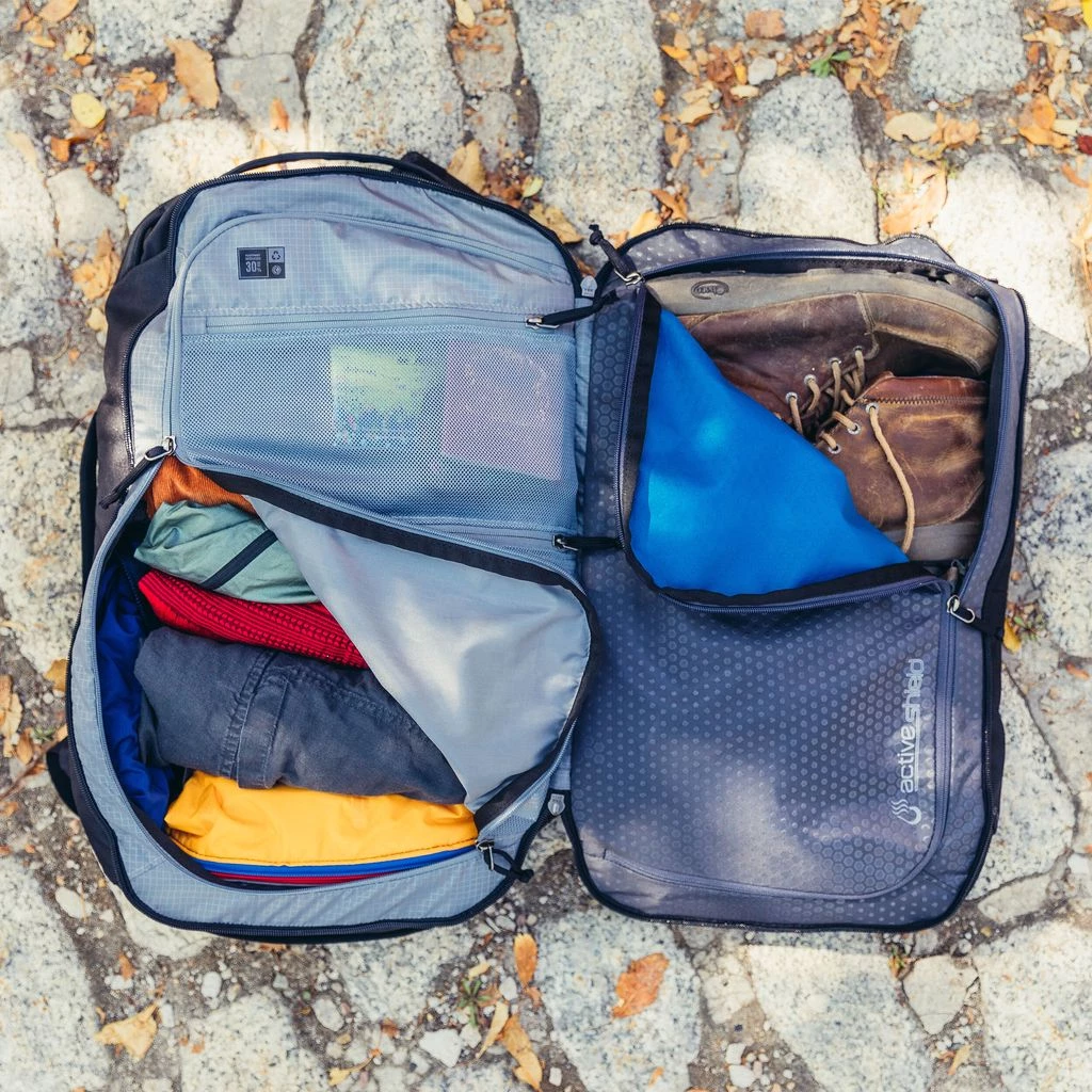 - ActiveShield zippered compartment with Polygiene StaysFresh® technology keeping dirty or wet clothing and gear separate for vapor, odor and dirt protection