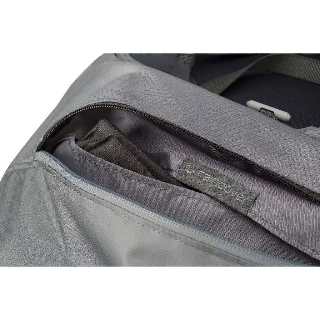- Custom fitted raincover included – stows in a quick access zippered pocket on underside of the top lid.