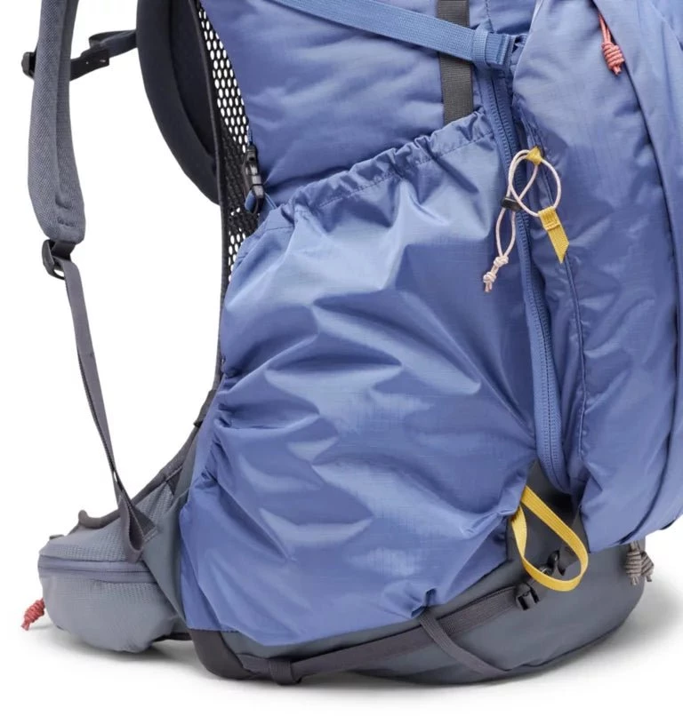 - Large volume side water bottle pockets made with durable shell fabric, with top and side on-the-fly access