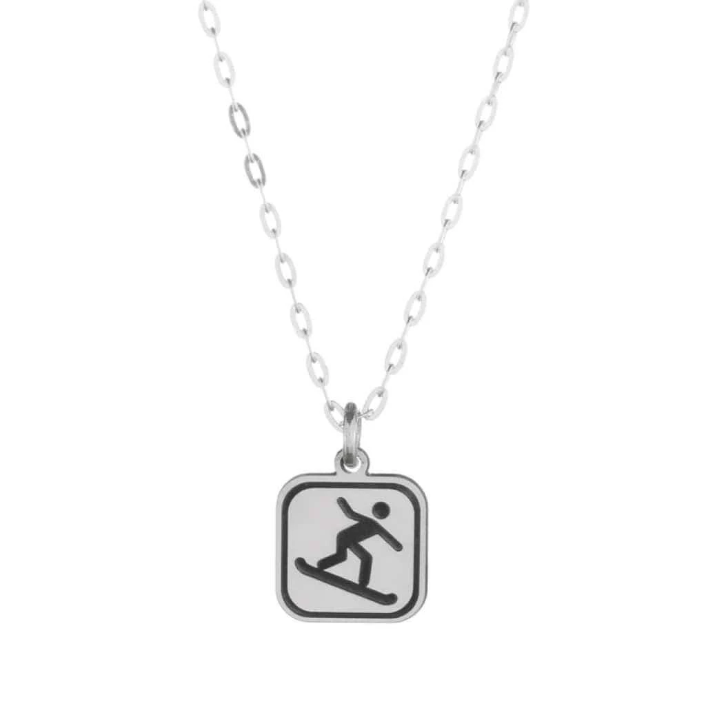 Show your love of snowboarding captured on an etched sterling silver pendant hung from a sterling silver chain.